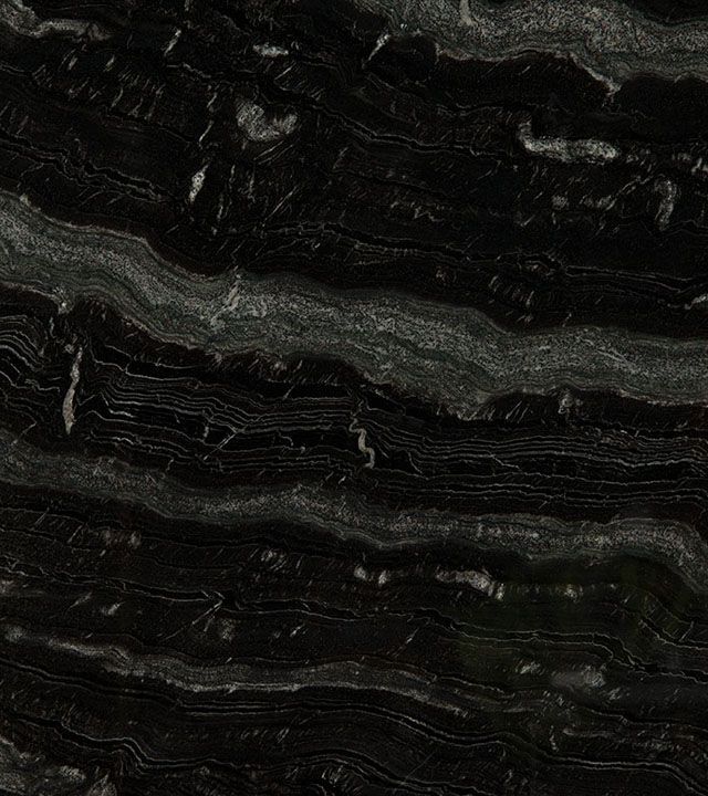 The electric energy of darkness is rarely as visceral, raw and allconsuming as in Hawaii’s frozen lava fields. There’s a beautiful strangeness in the duet of moving water and shores of charred earth, still humming with the lifeforce of long frozen lava. Ropes of undulating basaltic rock seem to flow in stillness, emanating with an ancient song of the sheer force of nature, creating and reshaping the magnificent shore. Petra Grigio embodies this vibrancy of darkness, expressing threads of subtle white across a rich two-toned grey background. Complex patterns echo the intricate wave formations etched into pahoehoe lava over thousands of years, and the glow of their smooth surface in the fire of the setting sun. The aesthetic embodies a vitality of shadow, and timeless spark of molten fire.