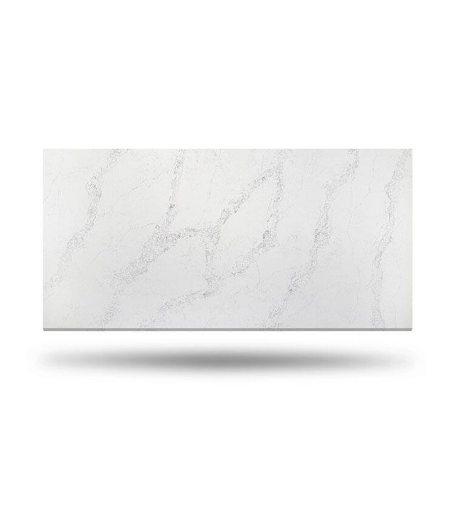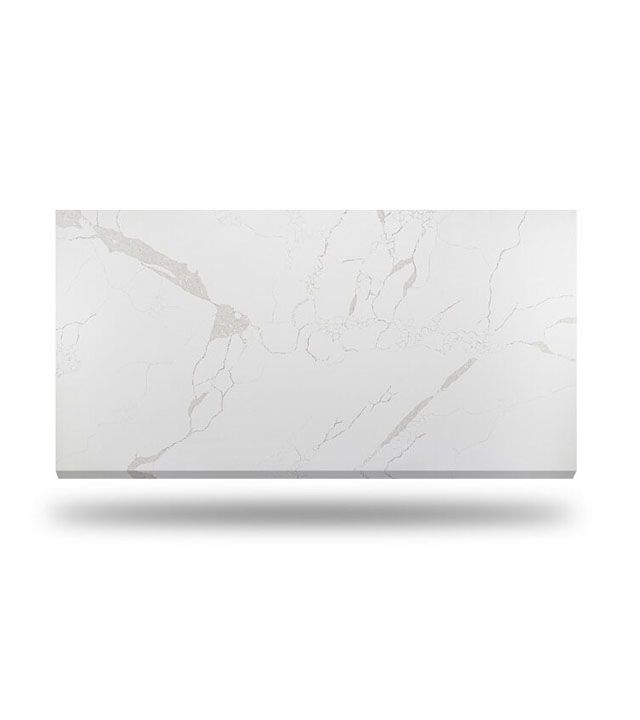 Affordable high-end looks and life-long durability come together in Calacatta Plata Quartz. This polished marble-look quartz features a soft white background and widely spread black veins for unstoppable elegance. Ready to harmonize with nearly any color scheme or design style, it's the perfect choice for creating white quartz countertops