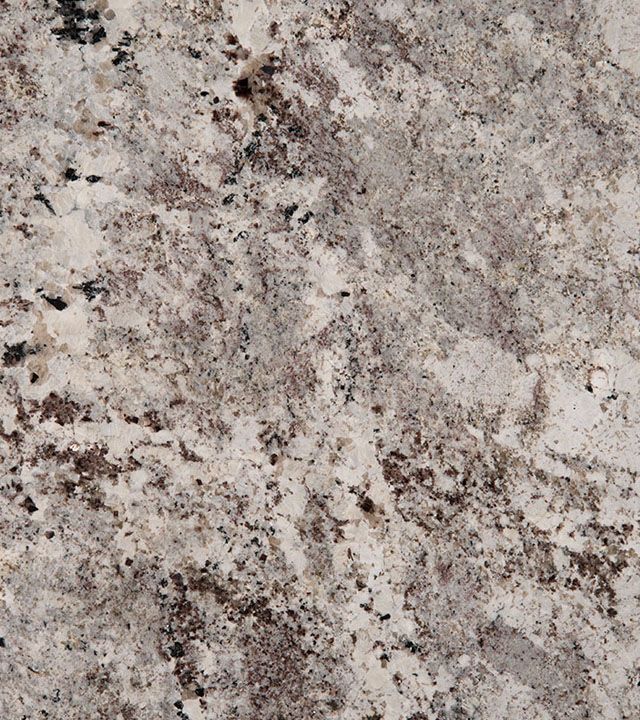 Alps White granite features a warm white background that is elegantly contrasted with rich Bordeaux flecks, hints of black, and a sprinkling of white crystals. This beautiful granite is suitable for a variety of design styles from traditional to contemporary. Create stunning granite countertops, backsplashes, accent walls, and floors with this durable natural stone.