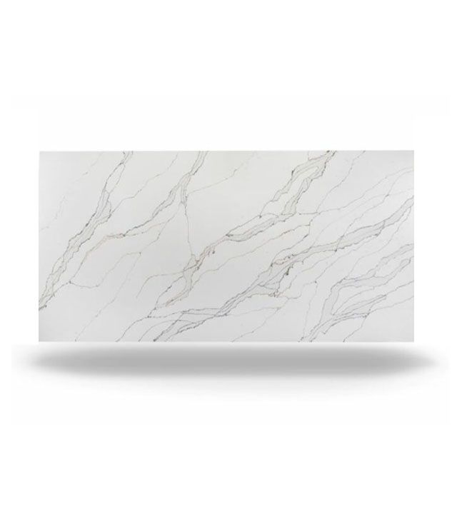 Affordable high-end looks and life-long durability come together in Calacatta Bianco Quartzite. This polished marble-look quartz features a soft white background and widely spread black veins for unstoppable elegance. Ready to harmonize with nearly any color scheme or design style, it's the perfect choice for creating white quartz countertops.